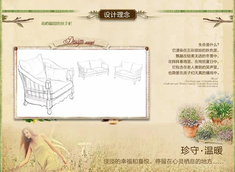 | 材质 | 1.坐垫采用优质亚麻布料和抱枕采用复合布料,全拆洗结构,面料手感舒适,耐磨,耐脏,绝对不会出现拆洗后 脱水、缩水。2.实木框架,精美手工雕花3.圆柱部分为桉木4.座板采用优质实木(桉木)复合板,结实稳固耐用5.优质环保漆,稳定不易变色6.优质五金配件 |