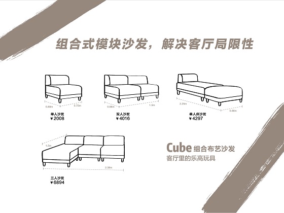 INK+IVY新品 Cube 布艺沙发采用的就是“模块化设计”,将沙发拆分成好几个“零部件”:可移动靠包+贵妃椅+单人沙发。对那些喜欢常常改变自己家居格局的人来说,INKIVY这种灵活组合的沙发能够满足多种不同的生活需求。