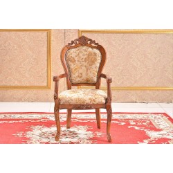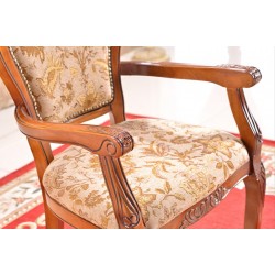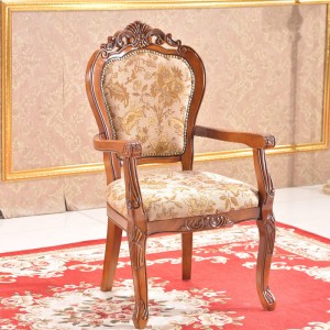 | 【宝贝名称】 精品欧式餐椅【品牌】 典梵家具 【宝贝型号】 636带扶手餐椅椅 【包装后体积】 0. 2m3(约数)(2把)/(件) 【产品包含】 拆装( 2把)/ (个) 【订制周期】 有库存第二天发货,无库存5-10天发货 【安装完成尺寸】640*630*1080H 【宝贝颜色】 图片色 【宝贝材质】 实木框架与高软包布艺结合 【保养需知】 遇难处理的污渍 可用牙膏或30%的清洁稀释液擦拭 |
