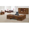 选用东南亚进口鸡翅木皮,木皮厚度0.6mm,实木采用缅甸樱桃实木,经过防虫防腐处理,耐磨性好,纹理清晰自然,色泽一致。基材:采用符合欧洲E-1标准的“福人牌”优质环保型人造板,封实木边.密度达700KG/M3以上,甲醛含量≤1.5mg/L,经防潮、防虫、防腐处理,强度高、刚性好、不变形,各种物理、化学性能指标均达到国际相关标准。油漆:采用台湾“大宝”环保油漆,底漆为(PE)不饱和聚脂漆, 面漆为(PU)双成份聚氨脂漆,漆膜硬度达2H~3H之间。光滑耐磨,手感好,色泽美观。五金件:采用德国海福乐著名品牌