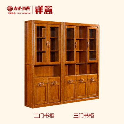 » 木景佳府现代中式实木二门三门书柜 家用橡木组合书柜储物资料柜