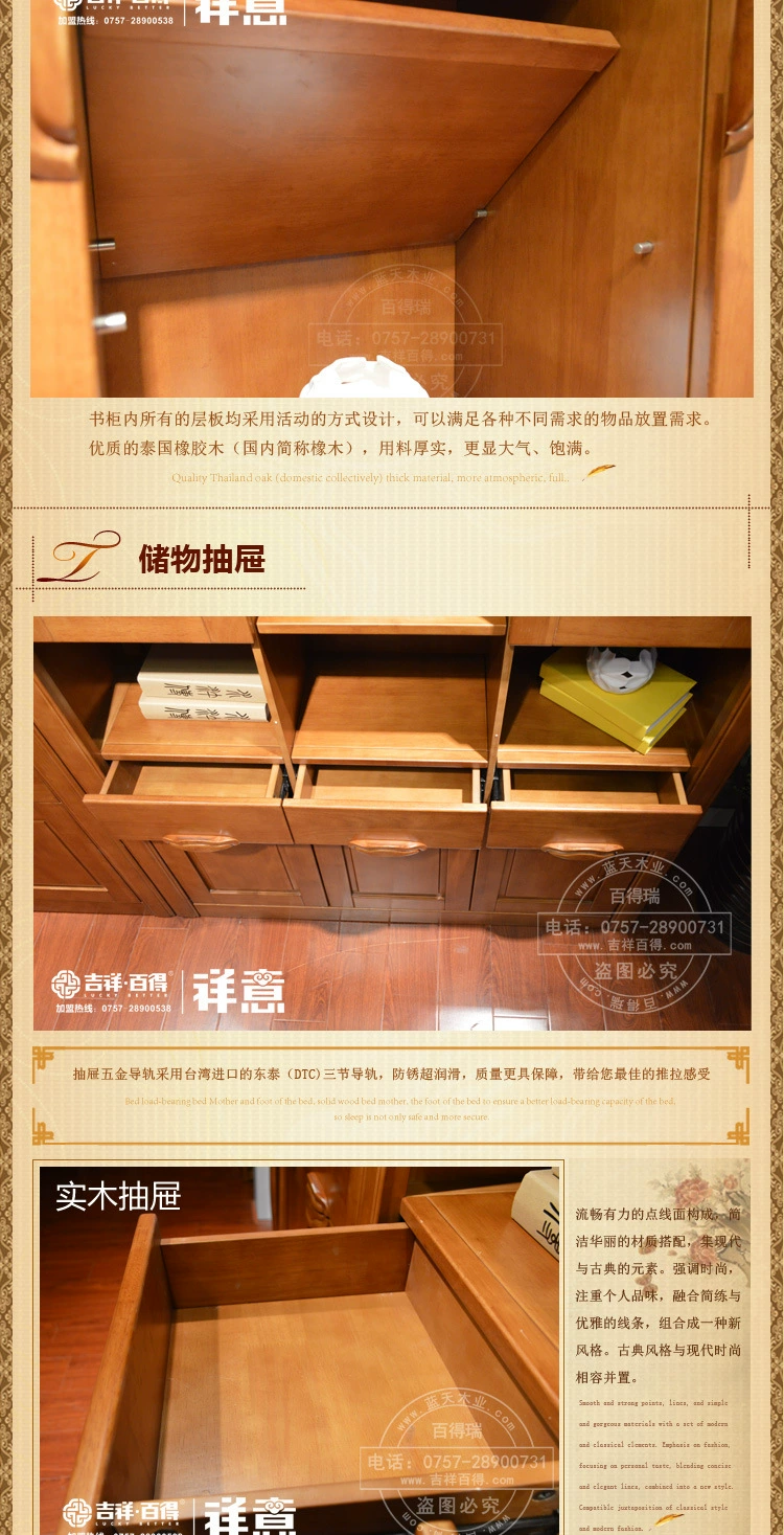 2、吉祥百得系列家具均为进口橡胶木,纹理、节疤均为天然成形,枝节形成的疤痕不属于质量问题。