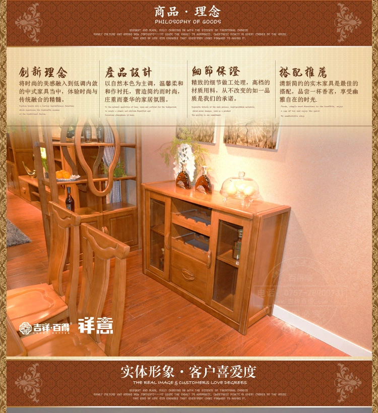 木景佳府实木家具 现代中式实木餐边柜 橡木餐厅储物柜收纳柜厂销