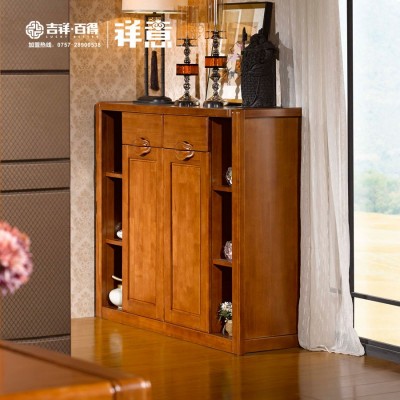 木景佳府实木家具 现代中式实木鞋柜 橡木客厅储物柜双门防尘鞋柜