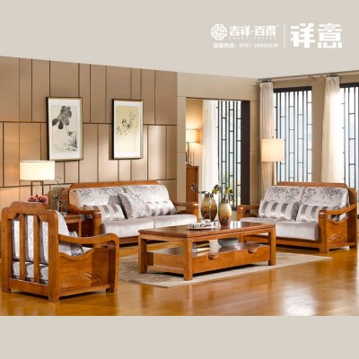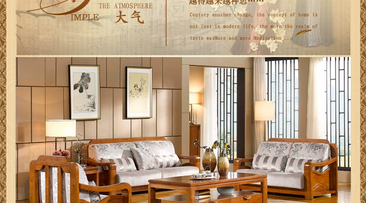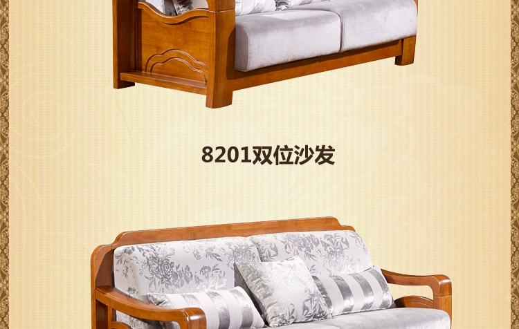 » 木景佳府实木家具 现代中式实木沙发 组合全实木沙发木加布沙发