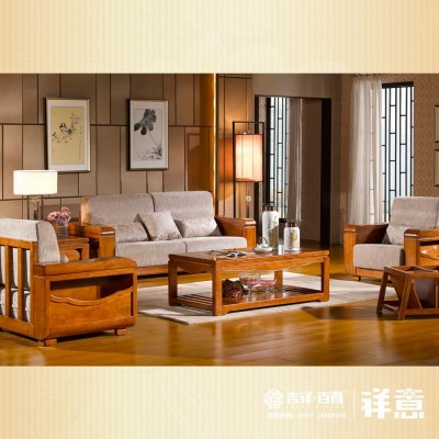 » 木景佳府实木家具 现代中式全实木沙发 高档储物组合实木沙发