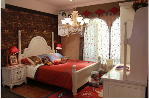 艾瑟儿曾是最受家长欢迎的女孩子名字,代表着英伦式的高贵和端庄,家长们都希望自己孩子能如同艾瑟儿这个名字一样,无需出身贵族,但从言行举止到道德修养都始终存在着一种出自内心的礼貌,出落成一位知书达理的大家闺秀。七彩人生中的艾瑟儿仿佛就是培育大家闺秀而设计的,采用泰国进口橡胶木制作而成,使用奶白色的水性漆涂色,整个房间既充满了高贵公主的梦幻感,又不失小家碧玉的可爱感,红色的床单,红色灯罩,白色印花的蕾丝窗纱,配饰的精致搭配让整体风格更趋柔和甜美,是一款很得女孩子欢心的儿童家具。
