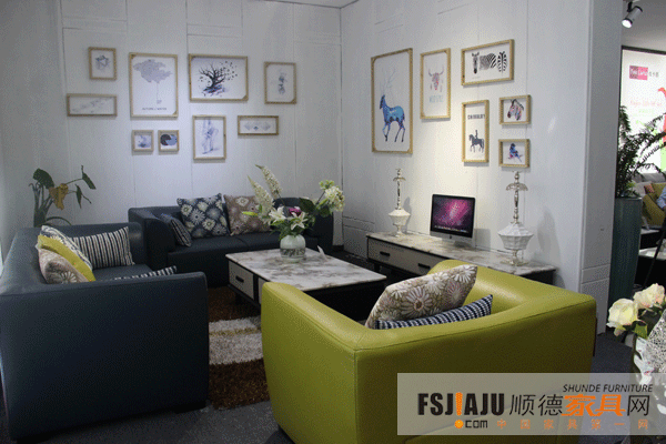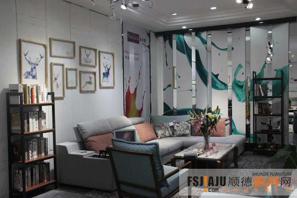 纵观展厅,首先被设计师营造的浓厚现代家居氛围所吸引,纯白色的背景墙与丰润的色彩碰撞出现代感十足的简约家居。