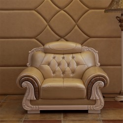 欧式真皮沙发组合 双扶手单人位 奢华高档客厅转角实木雕花762