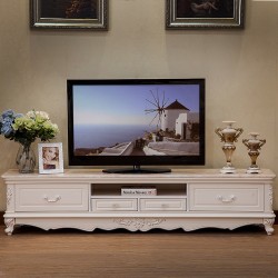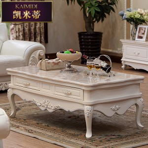 欧式大理石实木象牙白茶几 客厅高档抽屉储物 厂家特价直销