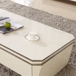 现代时尚简约创意 不锈钢玻璃 新款白色客厅方茶几