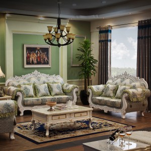 纯实木雕花 法式布艺沙发 田园欧式 仿古白123组合68-5 厂家直销