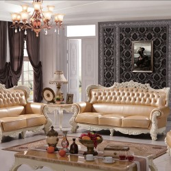 法式沙发组合 全真皮沙发客厅家具 纯实木雕花8902-2 厂家直销