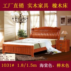 批发橡木实木家具橡木床1.8米双人大床高箱床顺德家具1031#大床
