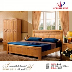 批发橡木实木家具橡木床1.8米双人大床高箱床顺德家具9123#大款