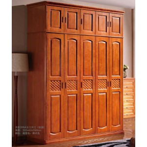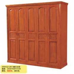 批发橡木实木家具衣柜储物柜五门开门2.0米加顶衣柜206#