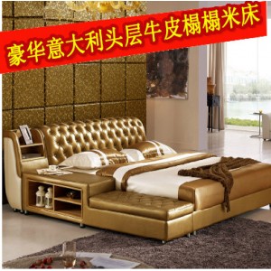 皮床 现代皮艺双人1.8米婚床 榻榻米头层牛皮真皮床 厂家批发零售