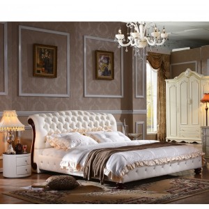 欧式高档皮床真皮床1.8米双 床婚床 时尚水晶扣简欧软床