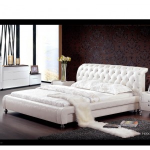 出口法国俄罗斯澳大利亚原单 白色真皮床 拉水晶扣床 双人床