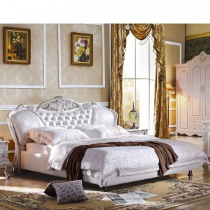 欧式进口皮床 实木贴银箔雕花床 法式双人床 厂家直销