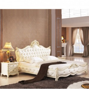 欧式皮床 实木贴金铂双人床 法式真皮床 简欧大床