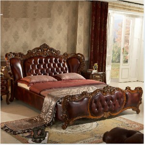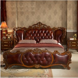奢华欧美式实木真皮艺婚床 双人1.8米法式新古典宫廷家具