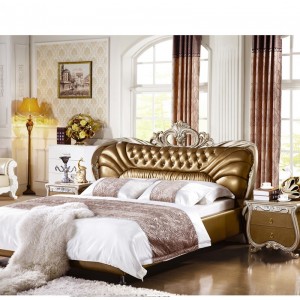 仙梦缘欧式床1.8米 双人床皇室家具 真皮床实木架公主床