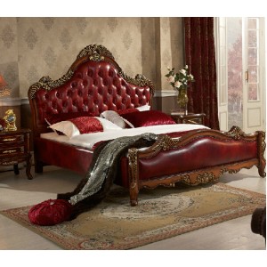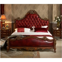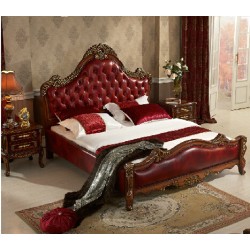 别墅家具 奢华欧美式真皮艺大床 1.8米双人法式实木婚床