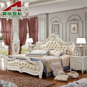 家具欧式床双人床 真皮法式床 田园公主床实木高箱床h911
