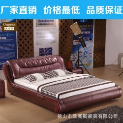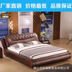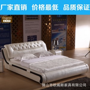欧阁斯厂价直销 现代简约真皮床 双人1.8米皮艺软床 特价时尚婚床
