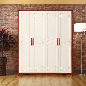 爆款热销地中海双色9002W4大衣柜橡木卧室家具四门衣柜 实木衣橱