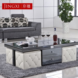 京禧新款四皮凳储物茶几 现代简约客厅茶几 玻璃茶几