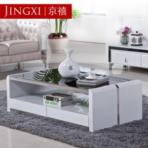 京禧现代简约风格茶几 黑白钢化玻璃茶几