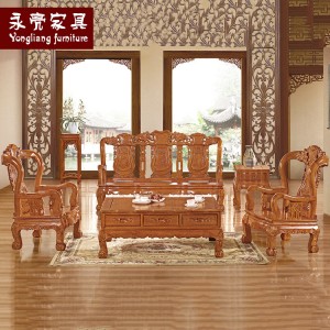 【濠亮家具】仿古实木沙发 供应茶色金象5件套仿古实木沙发 批发