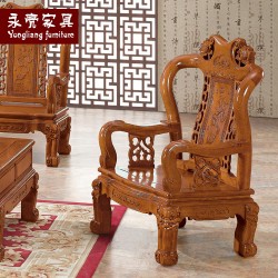 【濠亮家具】实木沙发家具 供应茶色如意中华8件套实木沙发家具