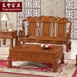 【濠亮家具】鸡翅木实木沙发 批发供应鸡翅山水万字8件套实木沙发