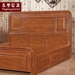 【濠亮家具】实木床 供应批发茶色1.8米万字大床 高质量 厂家直销