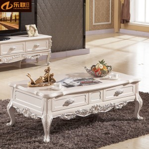 实木雕花大理石面客厅家具套房带抽屉功夫奢华茶几组合欧式茶几