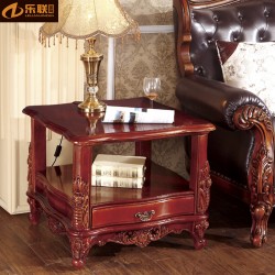 实木雕花大理石面客厅家具套房带抽屉功夫奢华茶几组合欧式茶几