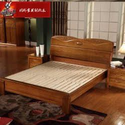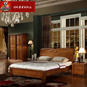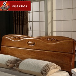 内外家具进口橡胶木实木床胡桃色1.8中式高箱床9130