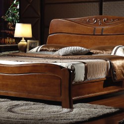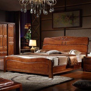内外家具佛山工厂批发橡胶木胡桃木色实木床9128