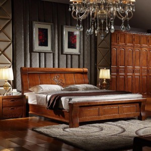 内外家具2014新款橡胶木实木胡桃色1.8米大床 实木床9120工厂批发