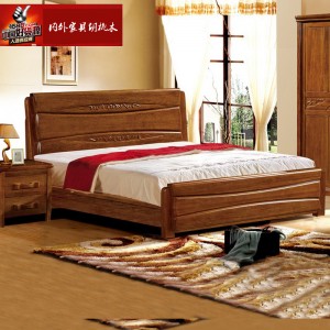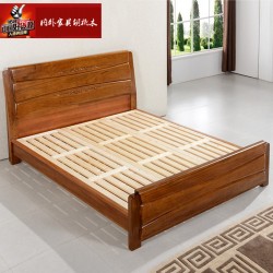 内外家具进口橡胶木实木床胡桃色1.8中式高箱床9130
