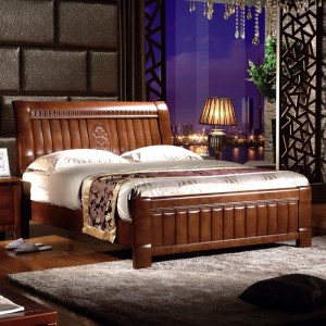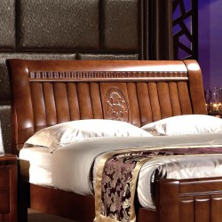 内外家具 中式卧室家具 1.5米橡胶木床 胡桃木色实木床 9111