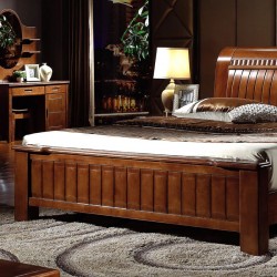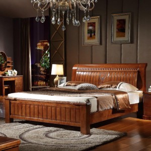 内外家具橡胶木实木床胡桃色木床 结婚大床 9106工厂批发特价
