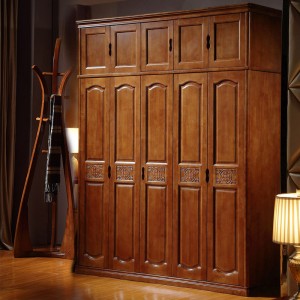 内外家具橡胶木实木胡桃木色衣柜 两门三门四门五门六门衣柜808