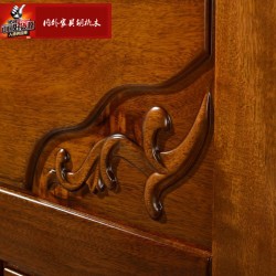 内外家具进口橡胶木实木床胡桃色1.8中式高箱床9130