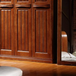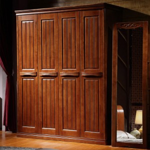 内外家具橡胶木实木胡桃木色衣柜 两门三门四门五门六门衣柜