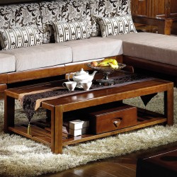 内外家具全实木橡胶木花转角沙发胡桃木色中式布艺沙发6805