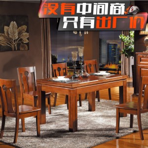 内外家具全实木餐台餐椅橡胶木胡桃木色餐桌002实木家具